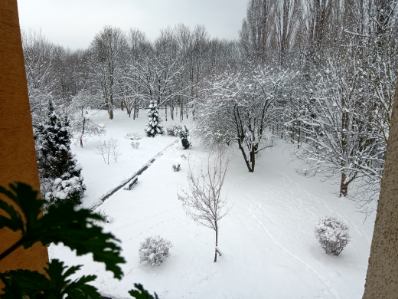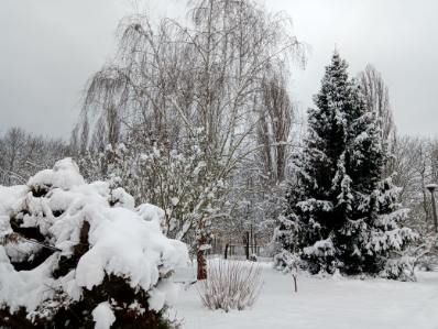 Ranek 15 lutego zaskoczył nas pięknym zimowym pejzażem. Ogród jak z obrazów impresjonistów, jak z bajki o królowej śniegu Andersena. Drzewa w białym puchu strącanym powiewem wiatru, zasypane ścieżki, milczenie ptaków. Zimowy pejzaż, zimowa nostalgia, natchnienie malarzy, poetów, kompozytorów.